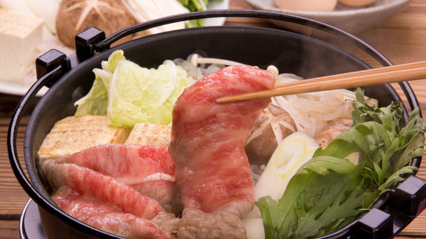 • Shabu-shabu or Sukiyaki – wagyu slices cooked in hot broth or sweet soy-based sauce, dipped in egg or sesame sauce.